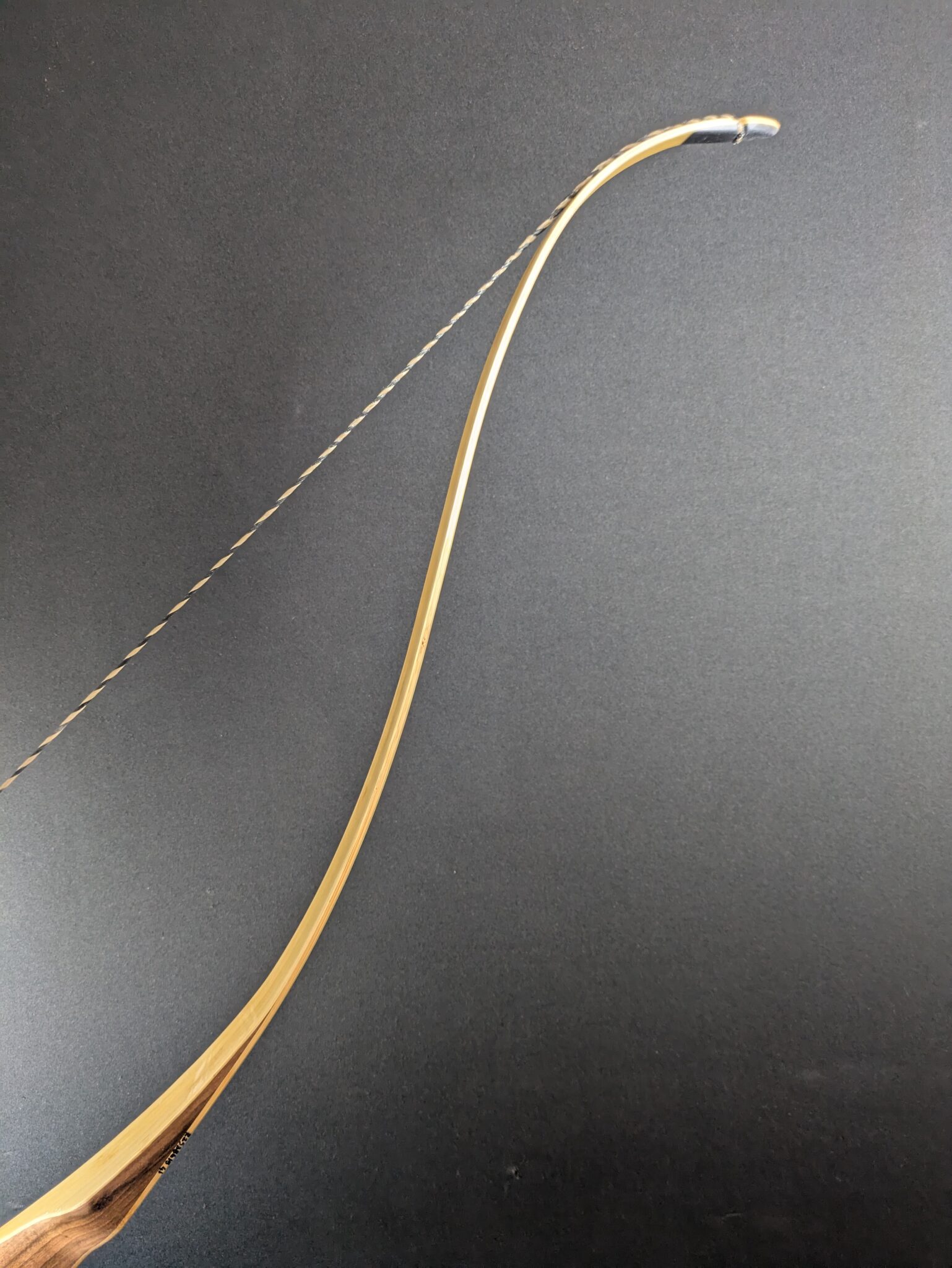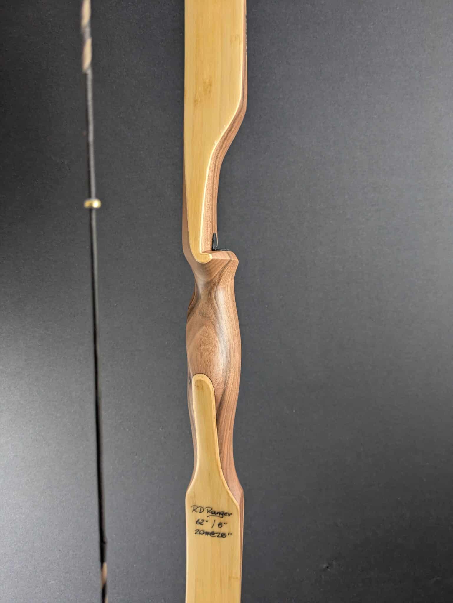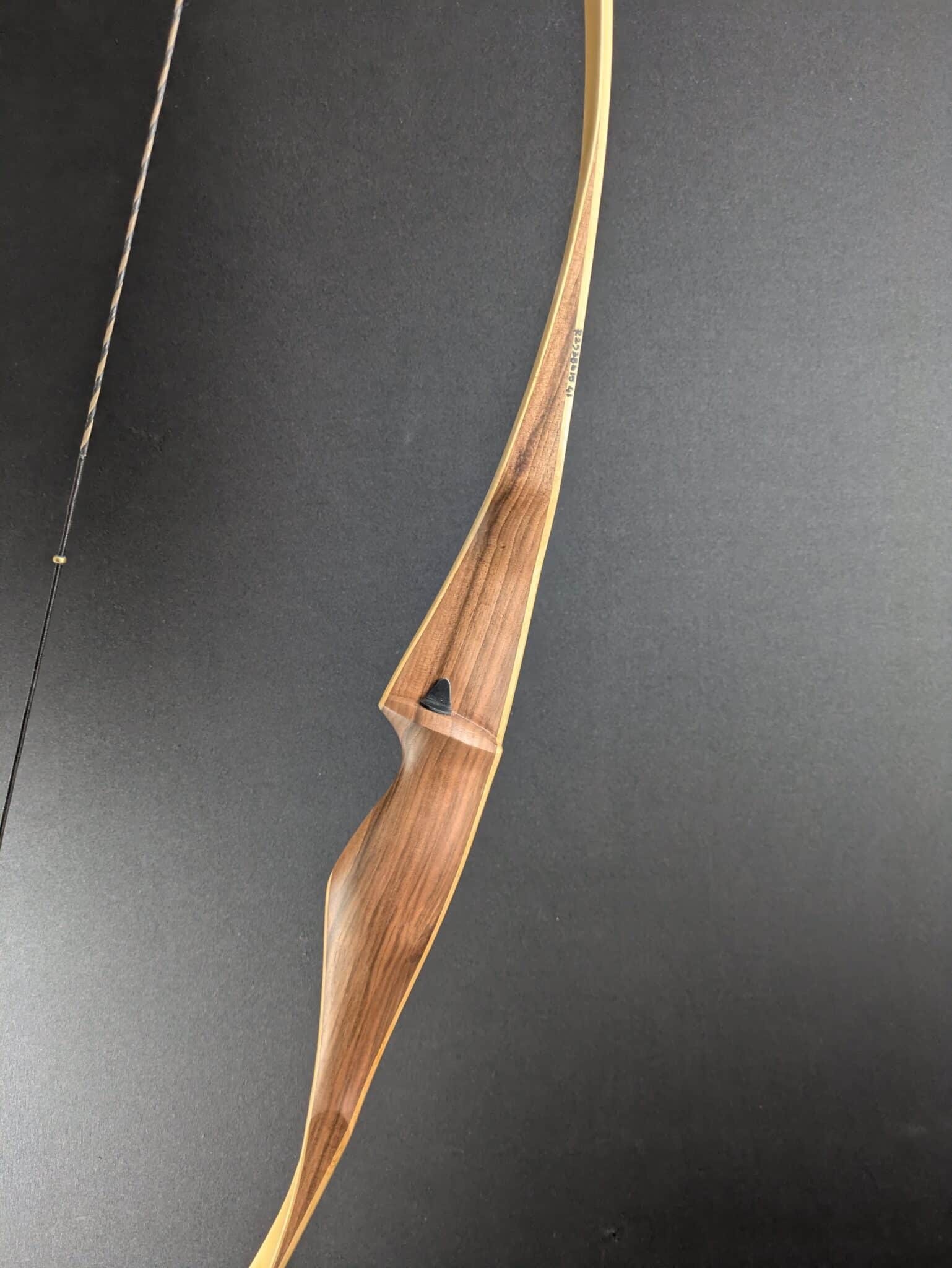 AMO: 62″ Hand: LH Zuggewicht: 20# Griff: Nussbaum Wurfarme: Bambus, Glas