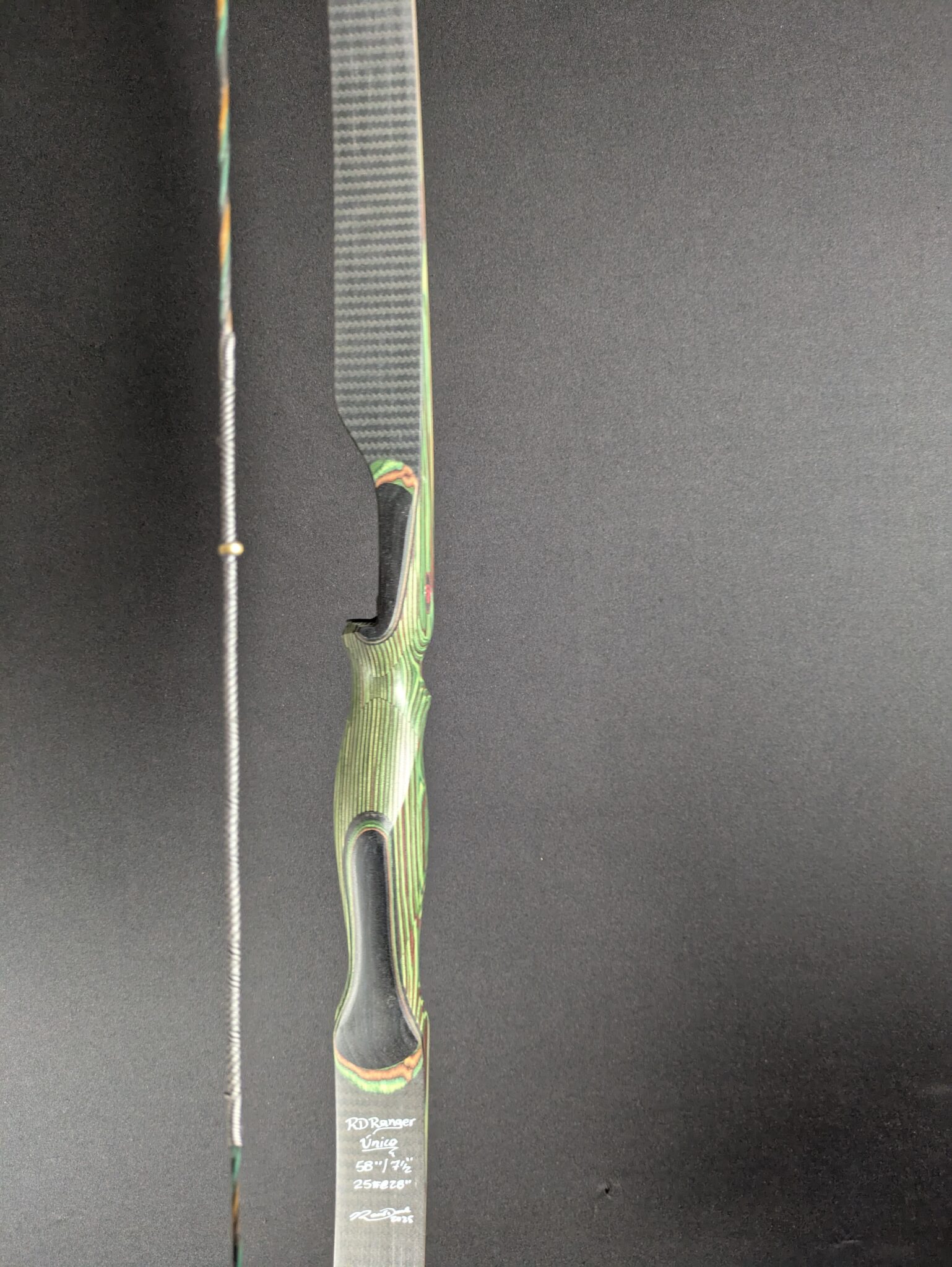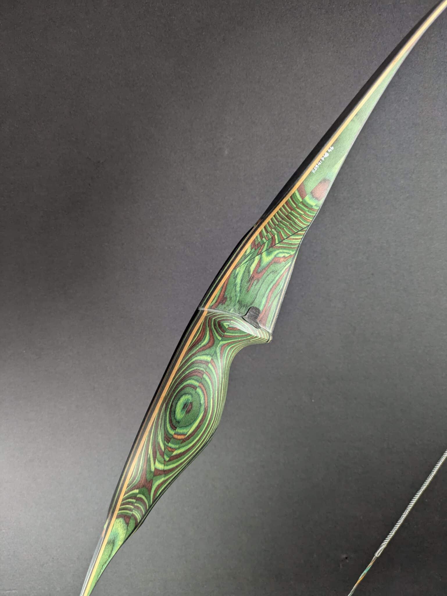AMO: 58″ Hand: RH Zuggewicht: 25# Griff: SaRaiFo Wurfarme: Bambus, Carbon