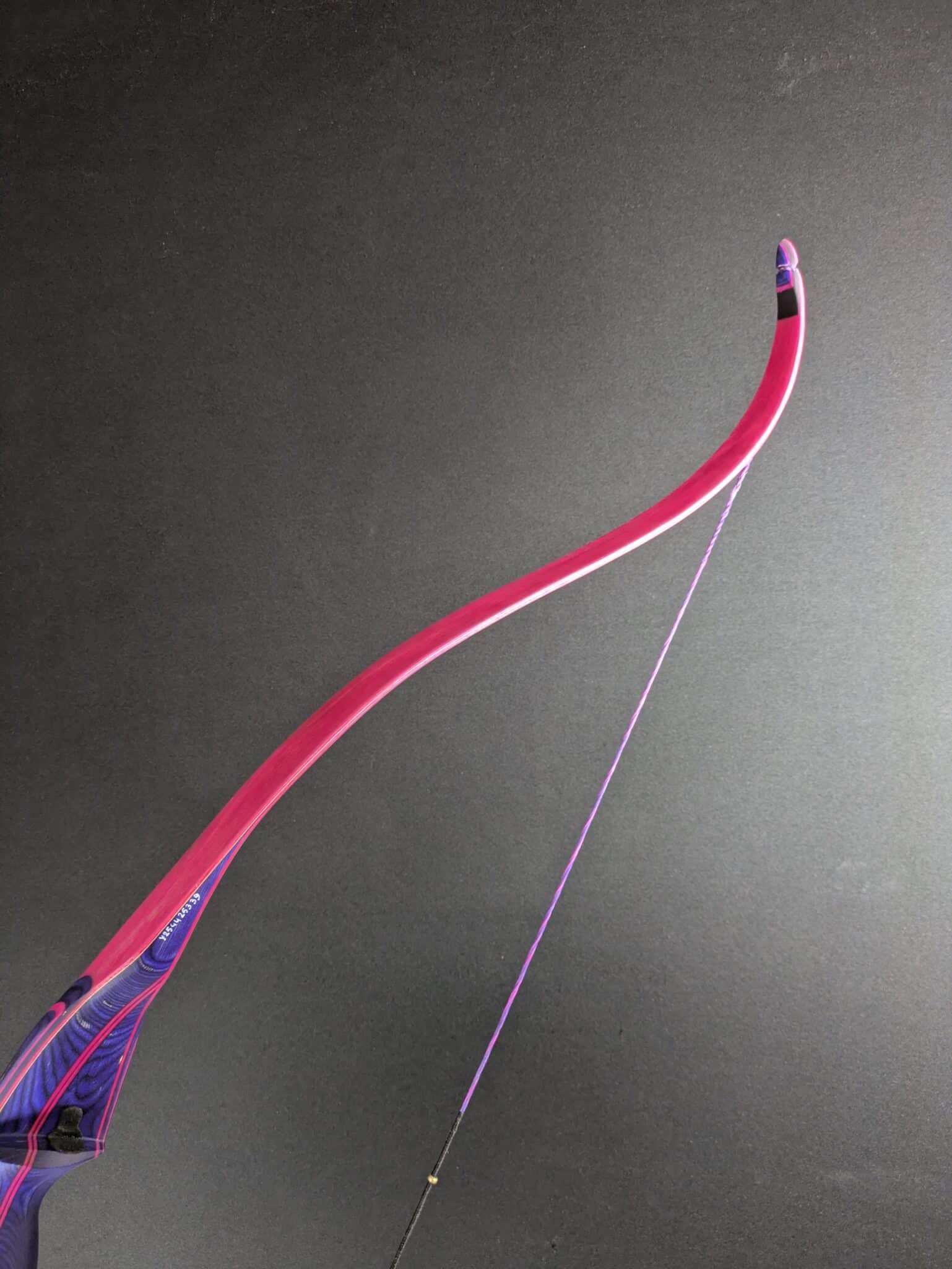 AMO: 50″ Hand: RH Zuggewicht: 30# Griff: Rezy wood Violett Wurfarme: Bambus, Glas, Gefärbte Birke Garantie: 5 Jahre